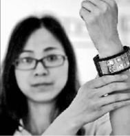 5月17日,具有完全自主知識產(chǎn)權(quán)的維信諾(固安)第六代全柔AMOLED(有源矩陣有機(jī)發(fā)光二極體面板)生產(chǎn)線,在河北固安啟動運(yùn)行。圖為工作人員在展示一款柔性顯示智能可穿戴手機(jī)。新華社發(fā)