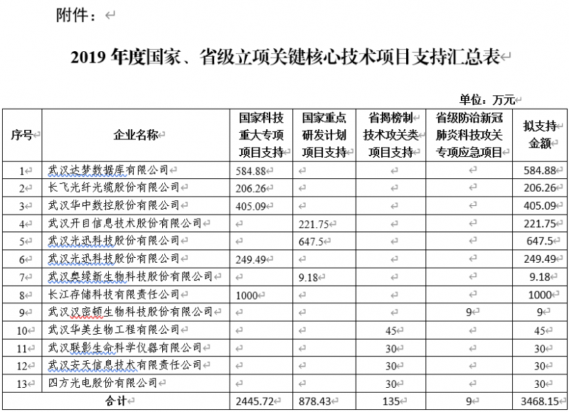 附件:2019年度國家、省級立項關(guān)鍵核心技術(shù)項目支持匯總表