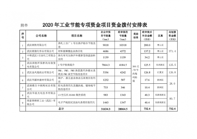 2020年工業(yè)節(jié)能專項(xiàng)資金撥付公告