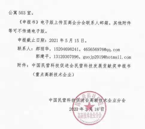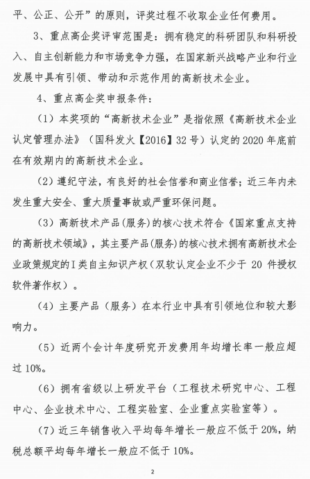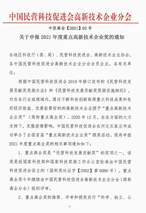 關(guān)于申報2021年度全國“重點(diǎn)高新技術(shù)企業(yè)獎”的通知