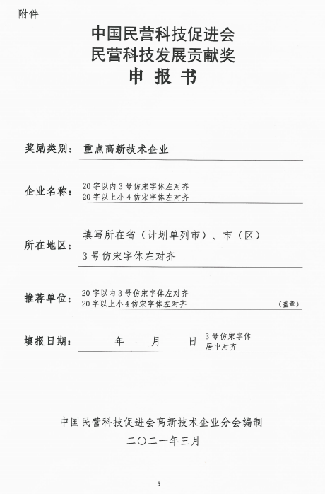 2、申報材料一式兩份,統(tǒng)一用A4紙裝訂成冊。請在2021年5月10日前將申報材料送至省高促會,逾期不再受理。