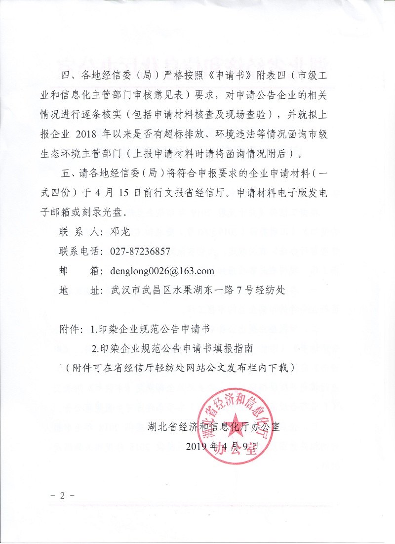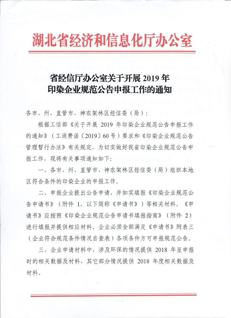 省經(jīng)信廳辦公室關于開展2019年印染企業(yè)規(guī)范公告申報工作的通知